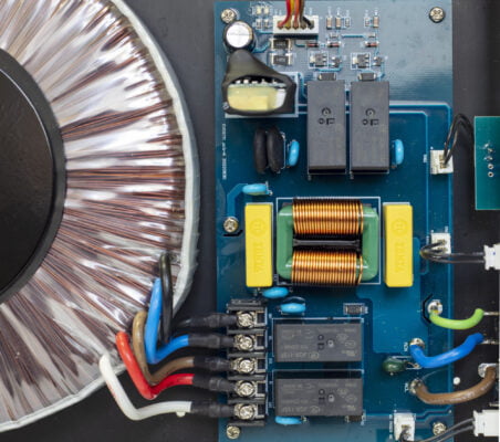 - High-quality copper PCB trace instead of usual cables are used to connect the power supply to the amplifier’s circuitry, maximizing power delivery.