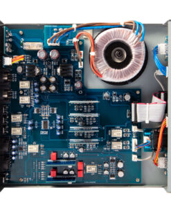 The phono input has a variety of settings for input resistors and capacitors to match different MM cartridges. PRA-9X phono amplifier is a 2-stage RIAA amplifier that utilises NJR MUSES8820 audio quality op-amp to provide an accurate RIAA curve and low distortion at high amplification and performance.